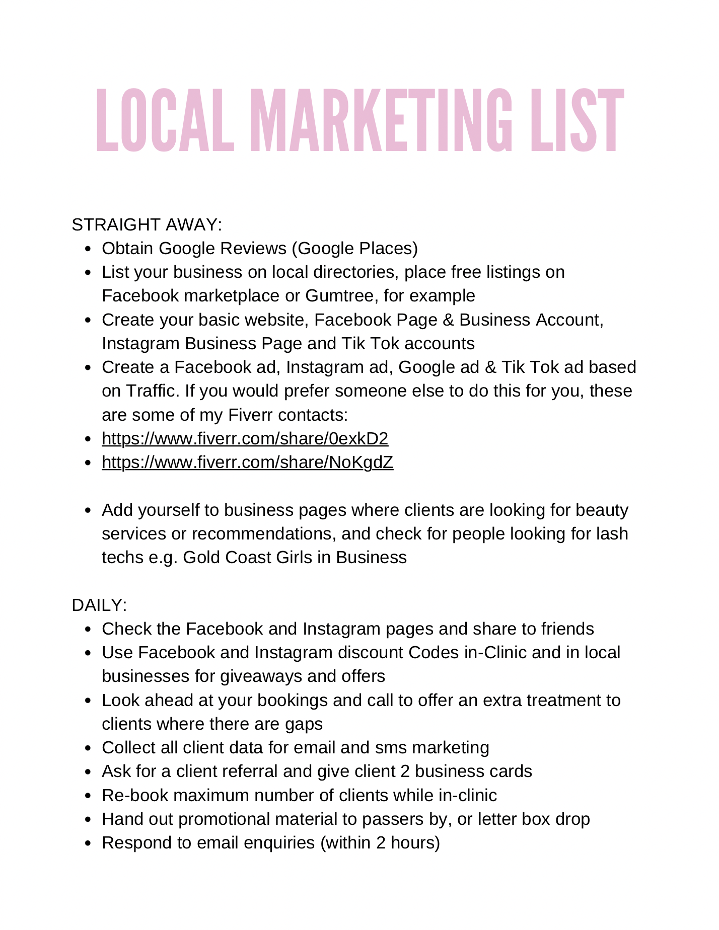 Use this free Marketing Checklist to guide your daily, weekly, monthly and yearly plans for marketing your salon.