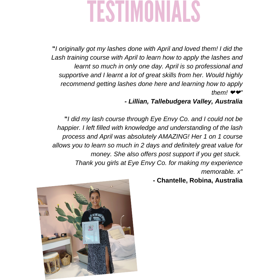 Crafted by a seasoned Eyelash Extension Technician boasting over 4 years of industry expertise, this Lash Bible is your ticket to unlocking the secrets of success. April, the mind behind this comprehensive guide, has not only built a thriving salon business but is also passionate about sharing her knowledge with aspiring lash artists. Her goal is to empower you to excel in eyelash extensions, paving the way for financial independence and a harmonious work-life balance.